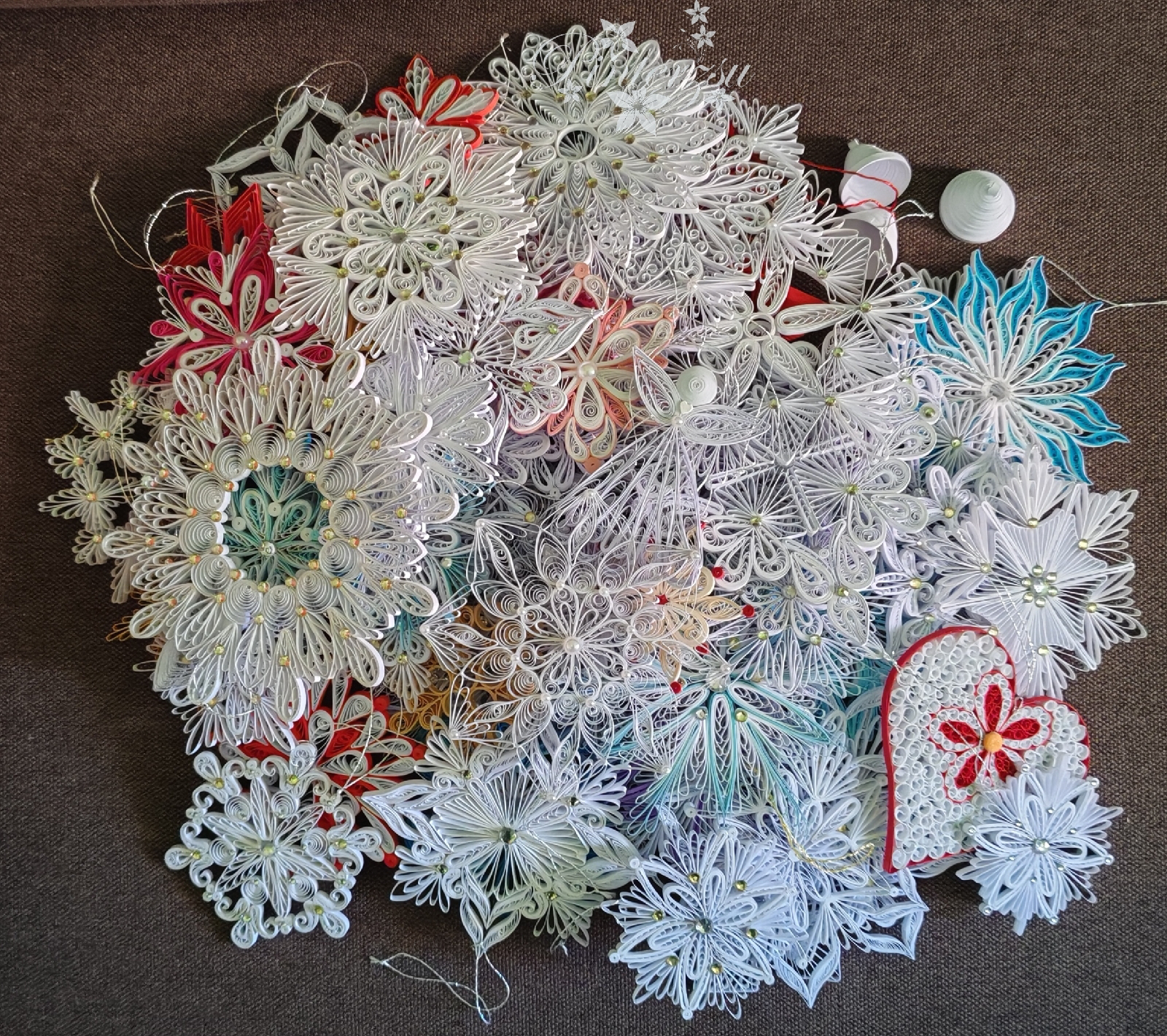 Egy régebbi díszem alapján kezdtem el készíteni, a készleten lévő elemekből. Természetesen nem sikerült ugyanúgy még egyszer elkészíteni, ez gyakran előfordul. Próbáltam menteni a menthetőt, általában így születnek az újabb változatok. 😊 Vannak jócskán hibái, de azért megmutatom. Azt hiszem, kicsit túl is bonyolítottam. 🤭